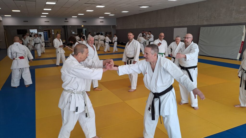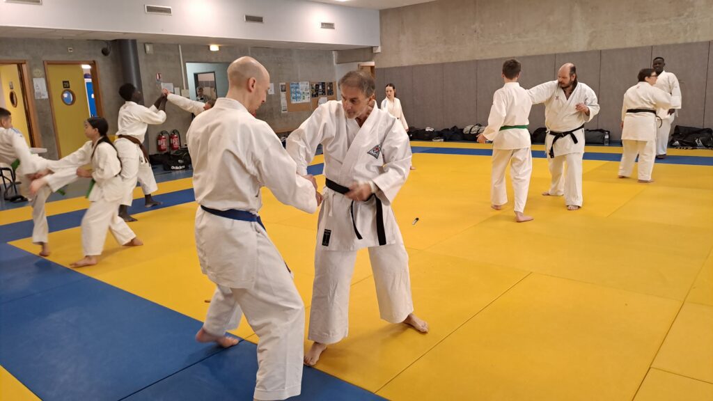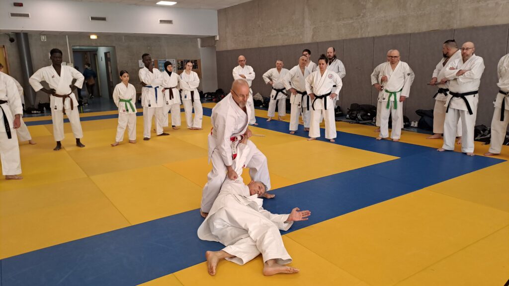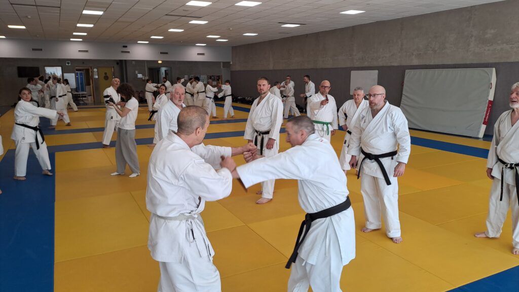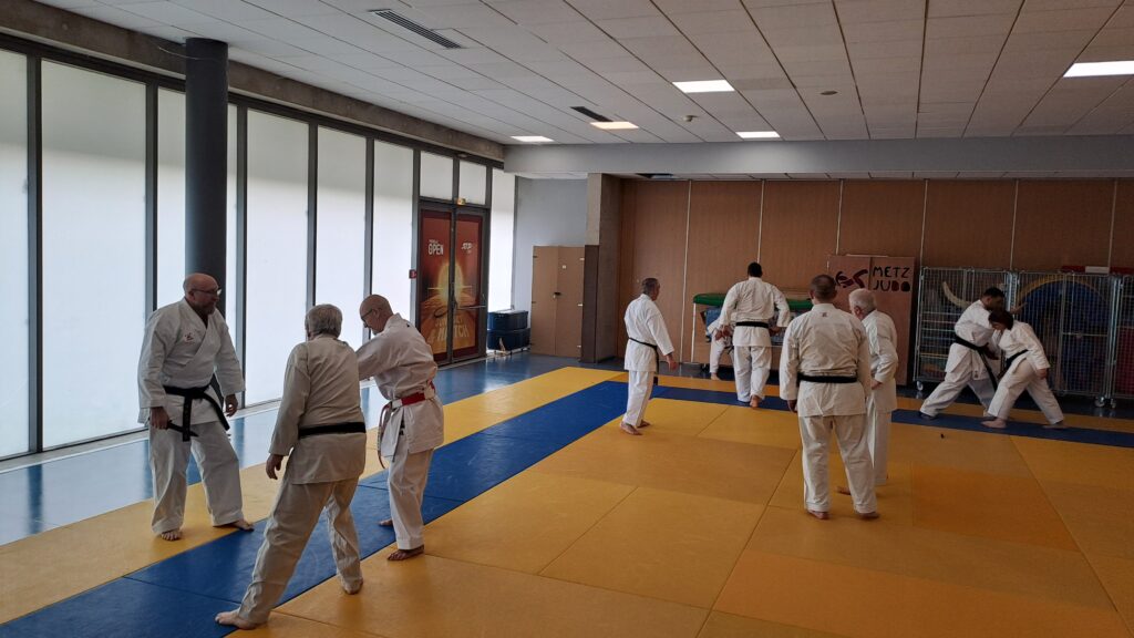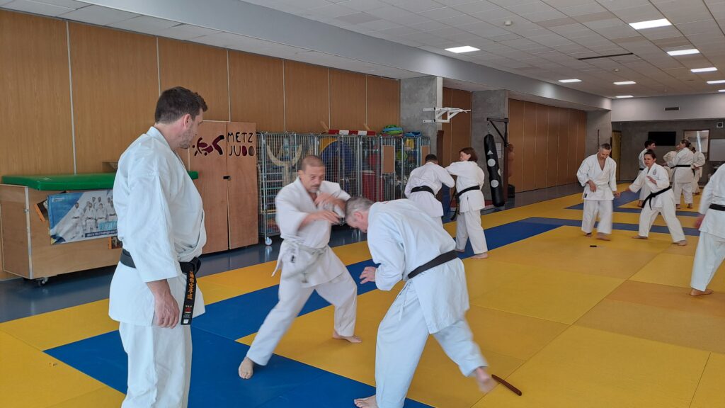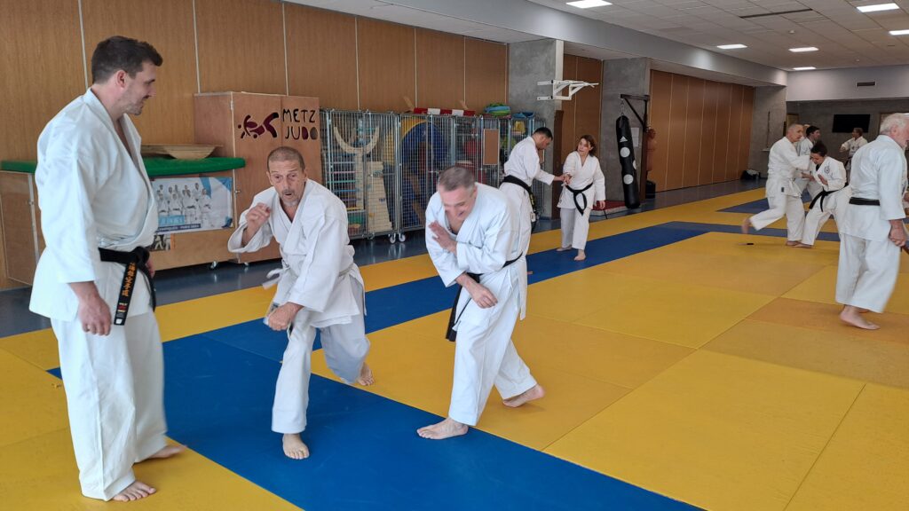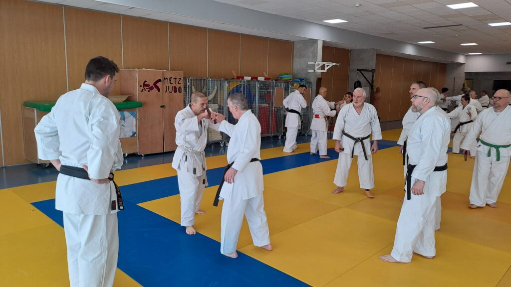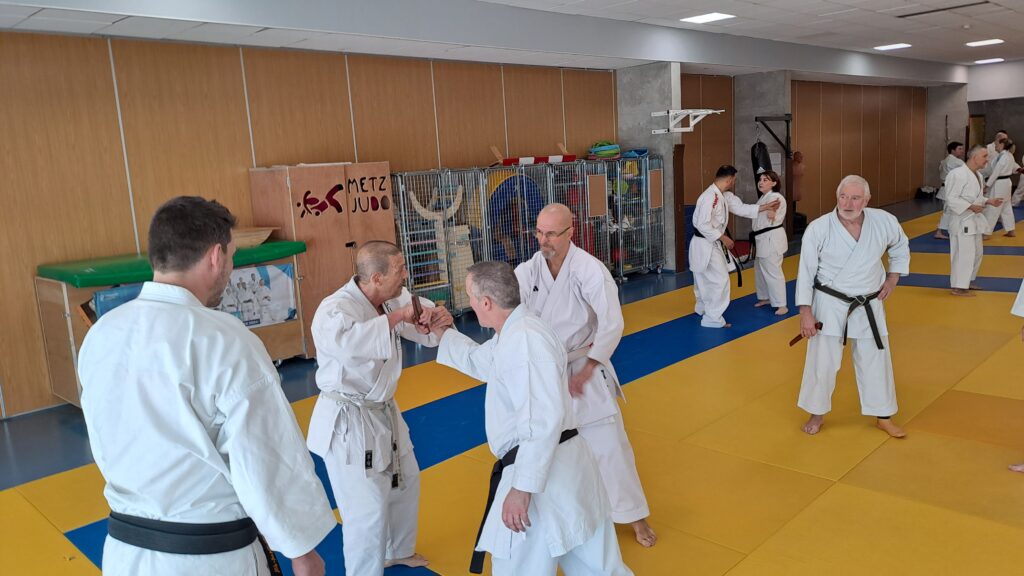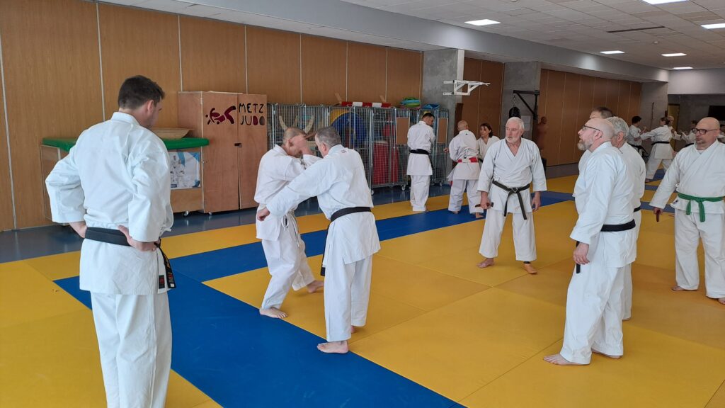 Dimanche 22 mars avait lieu un stage de karaté défense sous la direction de Joel NUNES, CN7e dan, Professeur du Karaté club de Metz et Alain FERRY CN 8e Dan, professeur de l’AKADA club de Nice et fondateur du Groupe Wado Ferry qui va s’efforcer d’assurer la transmission du Karaté Wado Ryu tel que Sensei Hiroji FUKAZAWA l’enseignait.