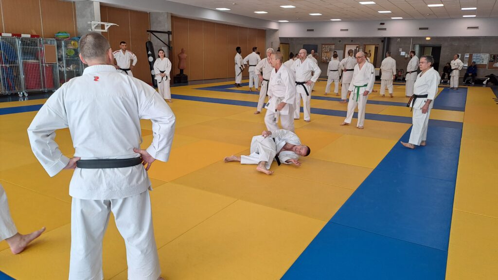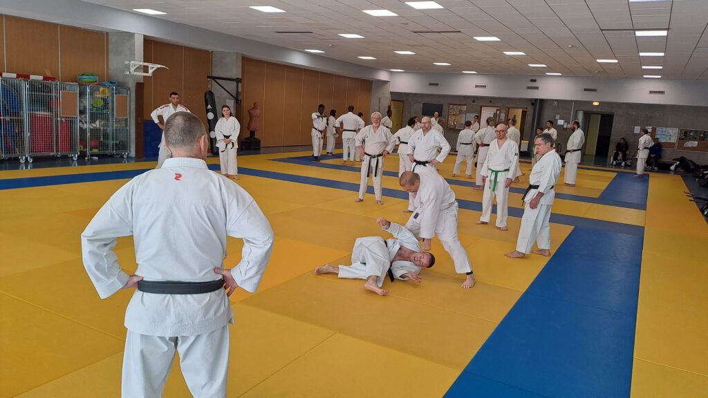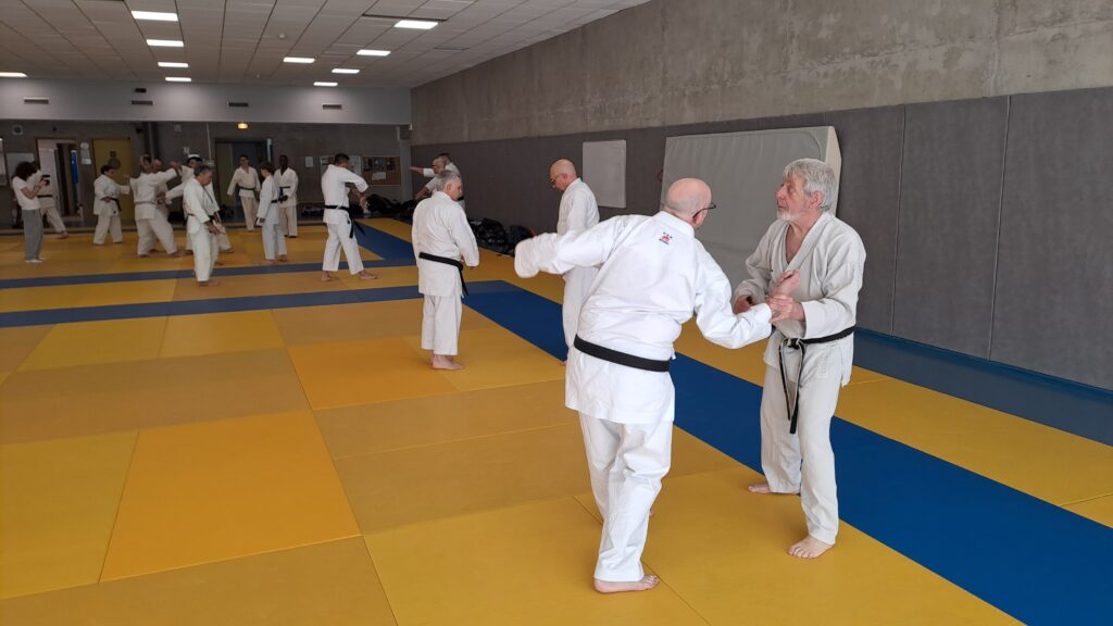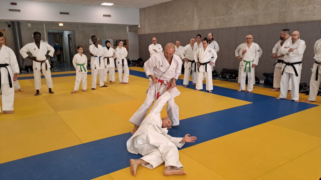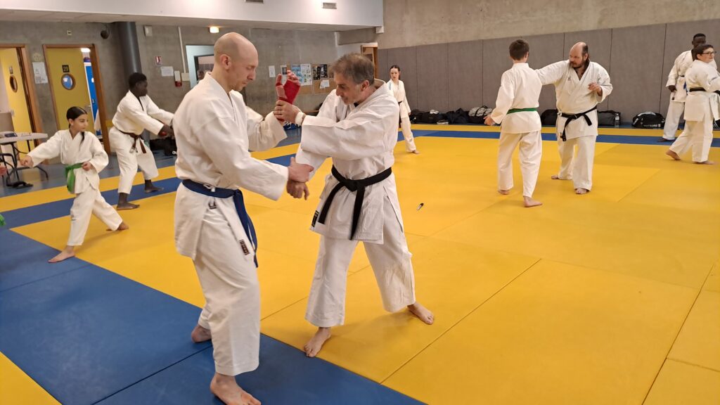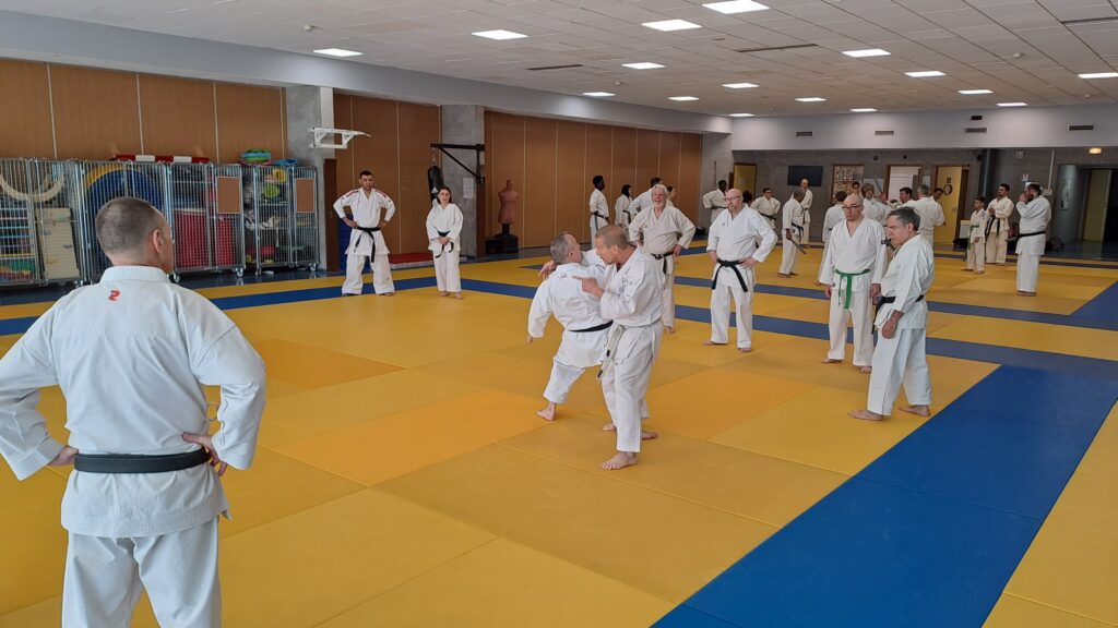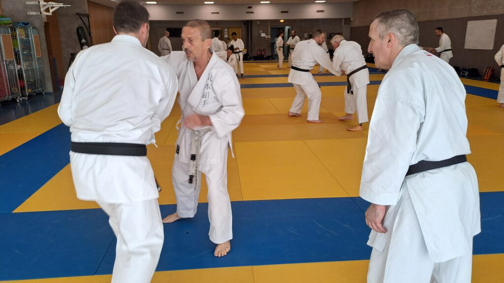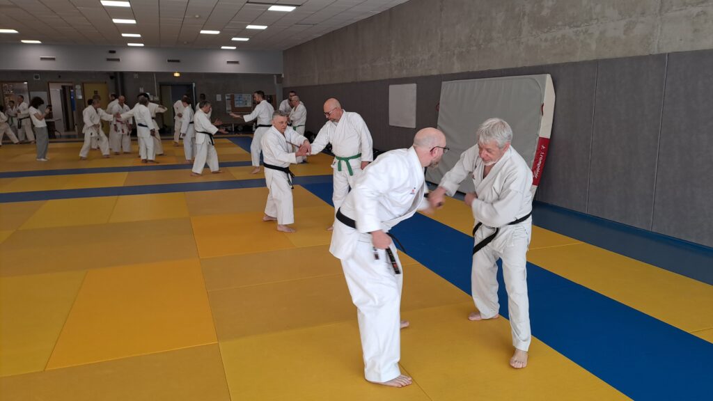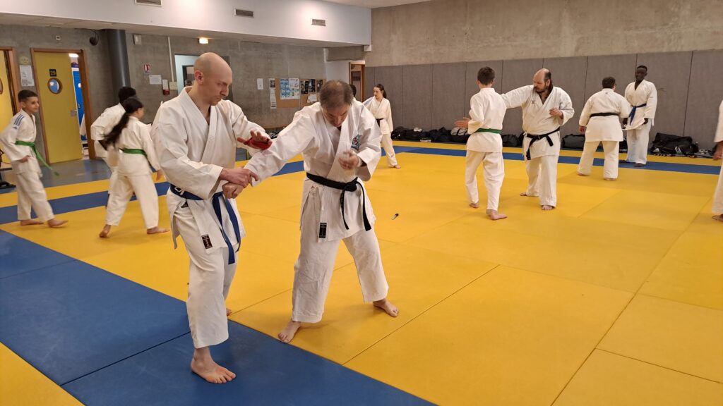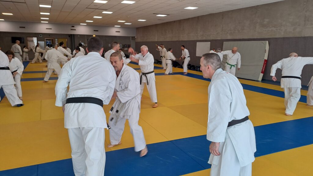 Dimanche 22 mars avait lieu un stage de karaté défense sous la direction de Joel NUNES, CN7e dan, Professeur du Karaté club de Metz et Alain FERRY CN 8e Dan, professeur de l’AKADA club de Nice et fondateur du Groupe Wado Ferry qui va s’efforcer d’assurer la transmission du Karaté Wado Ryu tel que Sensei Hiroji FUKAZAWA l’enseignait.